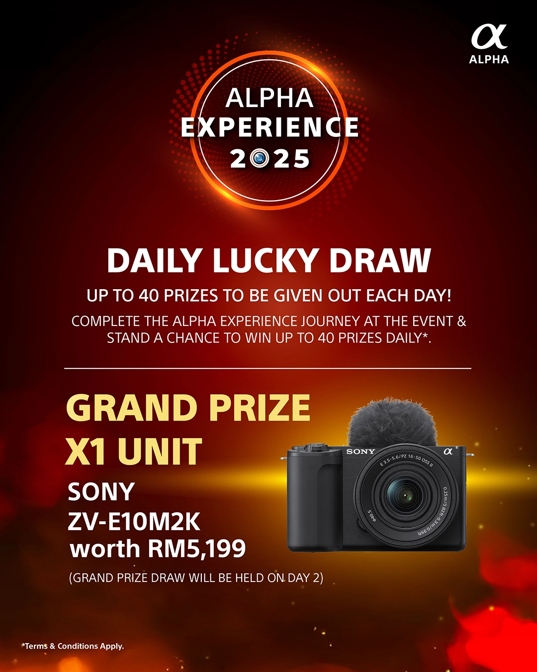 That’s not all—stand a chance to win big with our Daily Lucky Draw, where up to 40 prizes will be given away each day! Join the excitement and you could walk away with the Grand Prize – Sony ZV-E10M2K worth RM5,199!