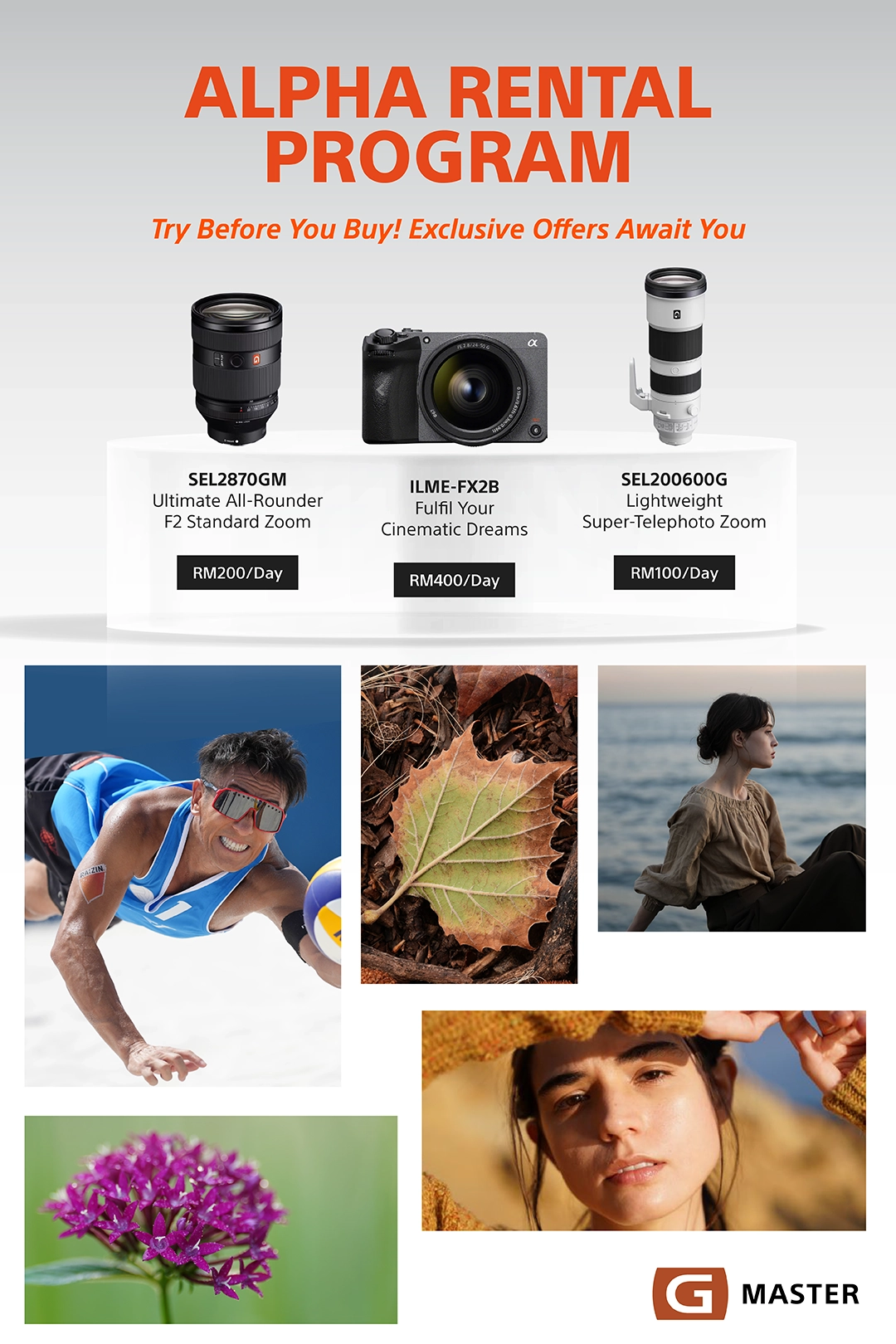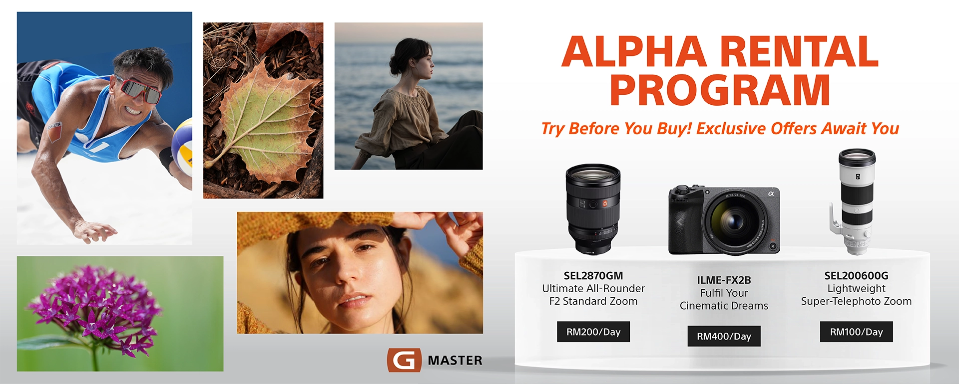 Now you can rent selected Sony Alpha cameras and G Master lenses exclusively at our Sony